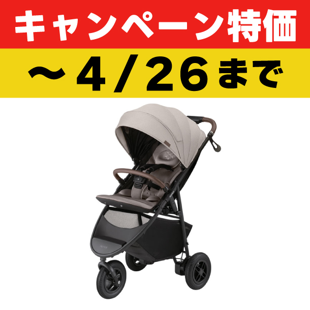 大型タイヤが段差を吸収して振動を和らげるため、乗っている赤ちゃんにやさしい乗り心地を実現します。