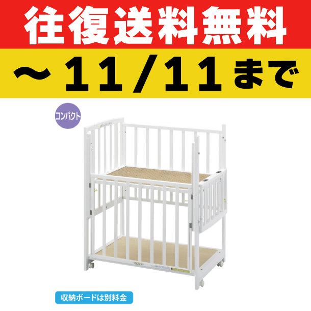 コンパクトサイズなツーオープンタイプのベビーベッド。