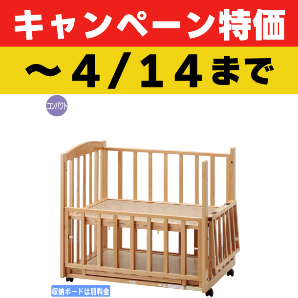 ママのベッドとくっつけて使う時も床板下の収納スペースが使えるように、後枠側にも収納扉を付けました。 前枠側、後枠側の両方から赤ちゃんグッズを楽に出し入れできます。