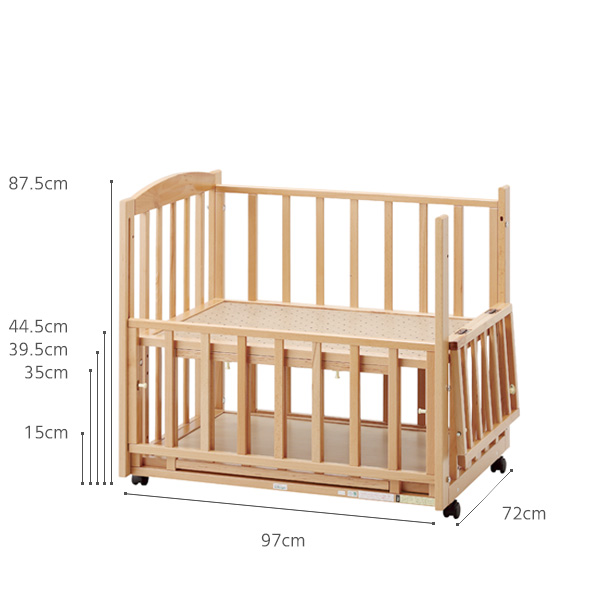 ベッドの前枠だけでなく側面も開閉できるツーオープンタイプなので、おむつ替えや寝かしつけの時にとっても便利! (開閉できる横枠は左右どちらにでも組立可能です。)