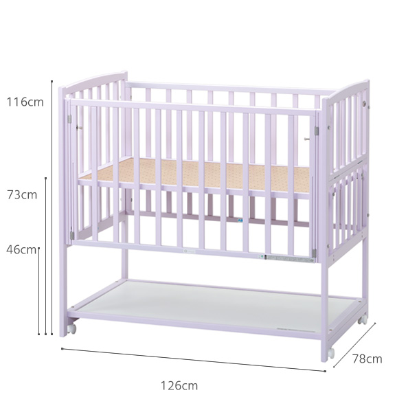 しかも、ベッドの前横の両枠が開閉できるので、オムツ替えや開閉がラクラク。